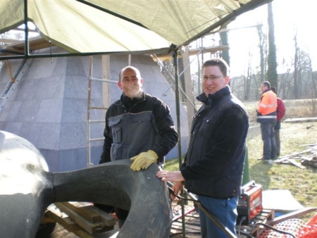 La Hauteur de la sculpture en Bronze fera 6m80 et le poids